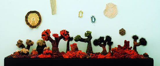 "We could crochet a coral reef," Christine declared, pointedly using the conditional tense. That was in December of 2005. The statement was rhetorical, not intended to be taken as a serious enterprise - but her sister Margaret, being a more literal character, put up a page on the IFF website calling for others to join us in this enterprise. One of the first people who called was the Andy Warhol Museum in Pittsburgh who announced they were having an exhibition on artists' responses to global warming in early 2007. They would like our Crochet Reef in the exhibition, the curator said. Would it be available?
