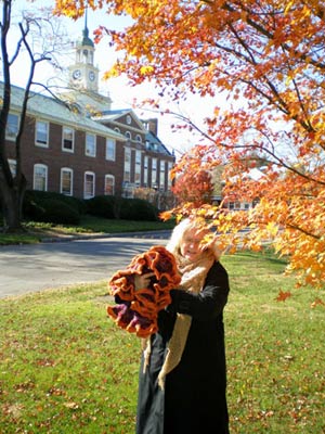 A mathematician at Cornell University, Daina grew up in Latvia where at an early age she learned to knit and crochet. She is a superb knitter and when she initially had the inspiration that led her to then invention of hyperbolic handicraft the first method she tried was knitting. You can indeed knit hyperbolic structures but it quickly becomes unmanageable with so many stitches on the needles; Daina realized that crochet would be the better method. She and her husband, Dr David Henderson, use these models as pedagogical tools in their classes on non-Euclidean geometry at Cornell, where the crocheted surfaces prove to be an invaluable educational resource in this often counter-intuitive field. Daina's models have also been included in the American Mathematical Model Collection at the Smithsonian Institution.