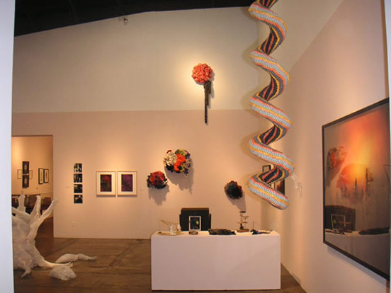 Helen Bernasconi's hyperbolic crochet constrictor in The Powder Room show at Track 16 gallery.