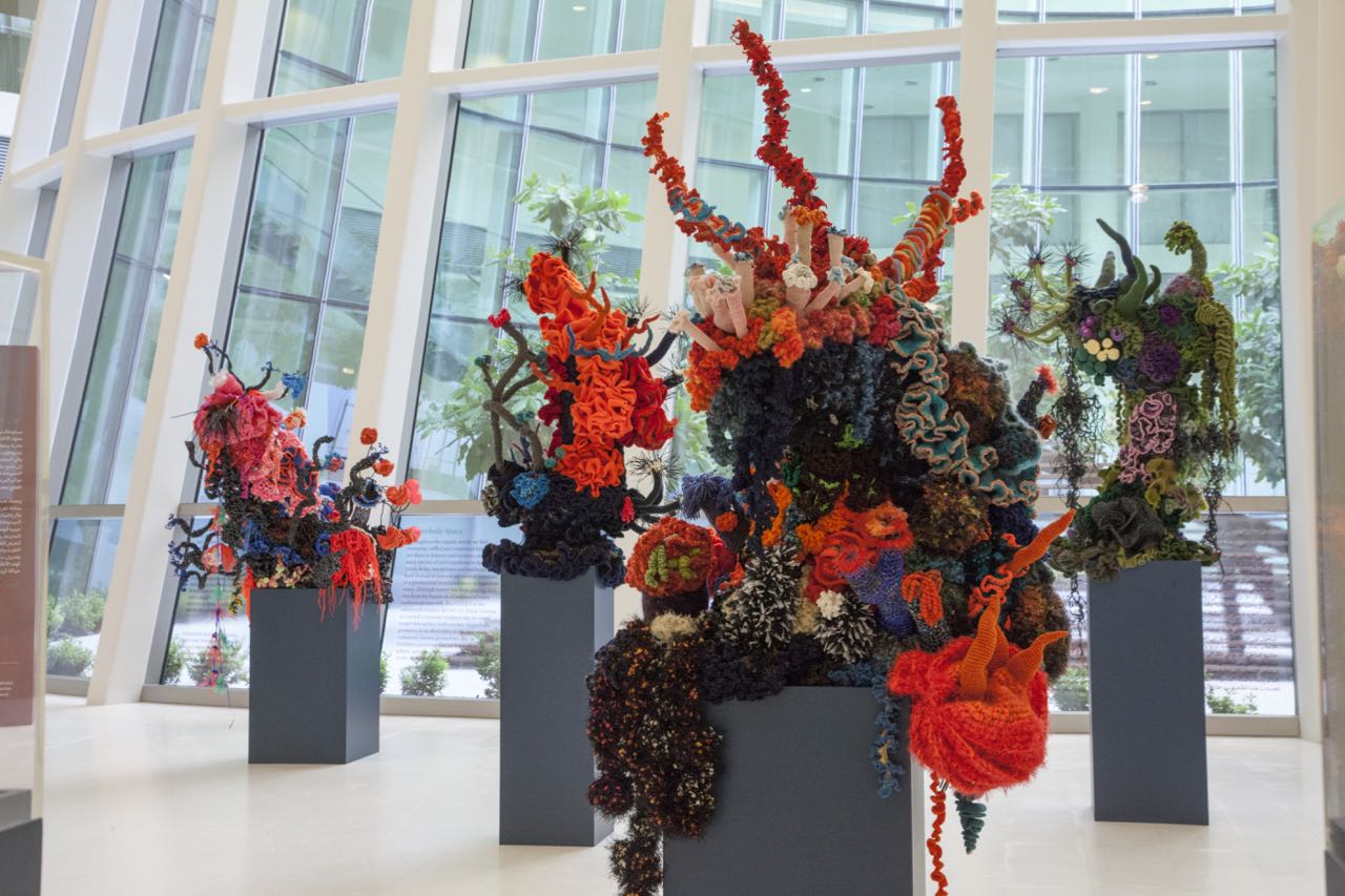 Accompanying the exhibition was thoughtful programming that included two wide-ranging panel discussions: 'Radical Craft' – about the new ‘radical craft’ movement, and how crochet can open unexpected paths to imagining and being in the world, (with Crochet Coral Reef co-creator Christine Wertheim and internationally acclaimed fiber artists Toshiko Horiuchi MacAdam and Shauna Richardson) – plus 'Reefs, Rubbish, and Reason' (which featured IFF Director Margaret Wertheim, along with cultural critic Lawrence Weschler and coral scientist John Burt), to discuss how science and art can work together to enhance our ecological consciousness.