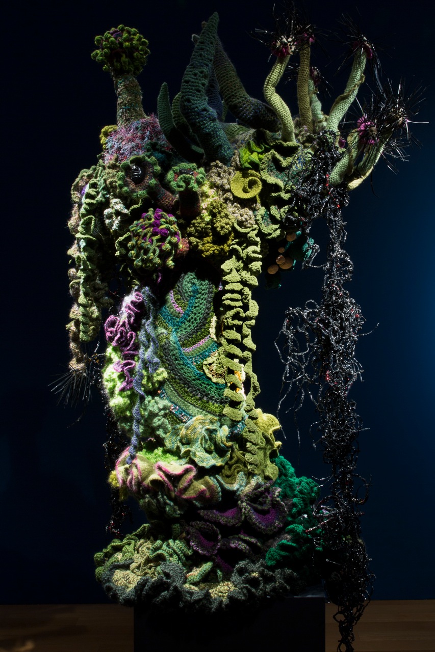 Crochet Coral Reef: TOXIC SEAS is curated for the Museum of Arts and Design by Assistant Curator Samantha De Tillio.