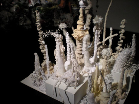 • A brand new grove of extraordinary white spire tube-worm forms by Evelyn Hardin (a bleached masterpiece, curated here by Ann Wertheim).