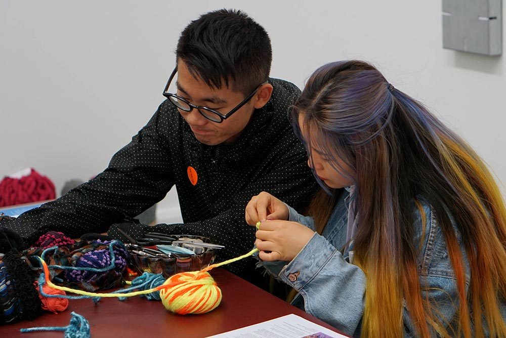 Vistors to the Van Abbemuseum in Eindhoven, the Netherlands, learning to crochet corals at the exhibitions Trade Markings: Frontier Imaginaries. Photo courtesy of the Van Abbemusuem, 2018.
