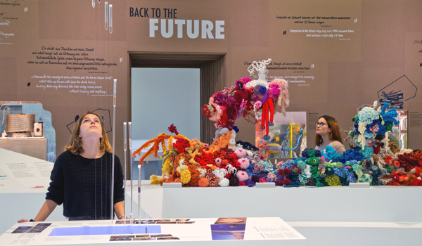 From December 2014 through September 2016, the Deutsches Museum in Munich hosted the exhibit Welcome to the Anthropocence, hailed as “the first major exhibition in the world to look at an issue that will be decisive for the future.” Renowned for its enormous collection of industrial artifacts and machines, the Deustches Museum is world's largest science and technology museum. At the center of the Anthropocene show was a newly created outcropping of the Föhr Satellite Reef specially constructed for this exhibition by the talented crochet reefers at the Museum Kunst der Westkuste. In a post-exhibition survey, the Deutsches Museum reported that the Crochet Reef was "the second-most liked object in the show," and in a welcome break from tradition it drew a wide female audience into a venerable institution whose visitors are usually overwhelming male.