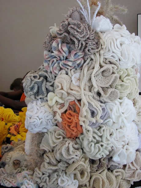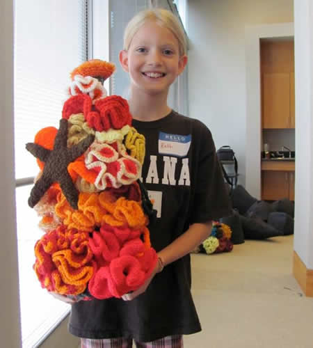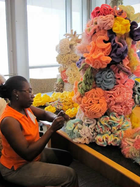 Crocheters 'moundified' during the weeks leading up to the Indiana Reef's debut. Photo by Carol Frolich.