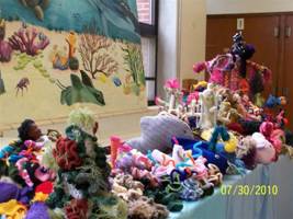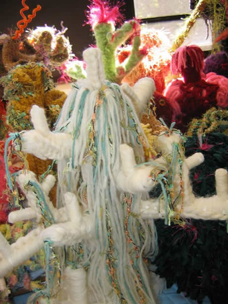 These creations now constitute a ‘Patch Reef’ that will be included as a part of the Indiana Reef exhibition at the Indiana State Museum in Indianapolis, opening September 1, 2010. The IFF is proud to have these Indiana women on board the Hyperbolic Crochet Coral project and thank them for all their efforts.